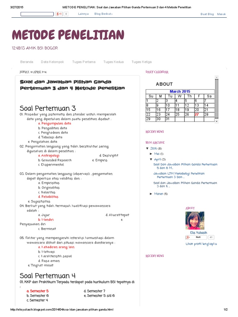 Metode Penelitian Soal Dan Jawaban Pilihan Ganda Pertemuan 3 Dan 4 Metode Penelitian